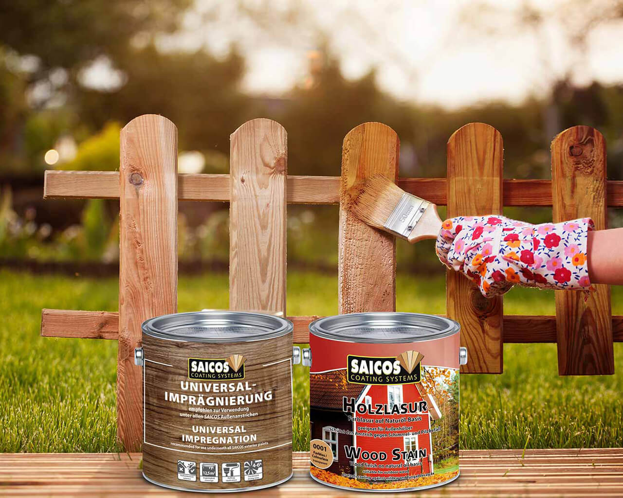 In Kombination mit der SAICOS Universalimprägnierung ist die SAICOS Holzlasur der optimale Anstrich für alle Außenhölzer. So bleiben Zaun, Sichtschutz, Gartenhaus uvm. nicht nur im Spätsommer, sondern auch in der kommenden dunklen Jahreszeit trotz Sonne, Feuchtigkeit und Kälte schön wie am ersten Tag.