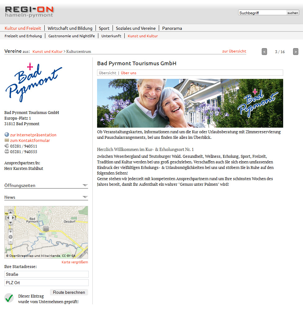 Sie können die Inhalte, die Sie in regi-on.de eingeben auch auf der eigenen Internetseite verwenden. Damit müssen Sie die Inhalte nicht doppelt pflegen und auch Ihre Seite bleibt immer auf dem Laufenden.
