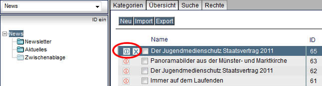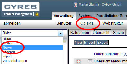 Gehen Sie dann in Cyres in das Menü Objekte/News.