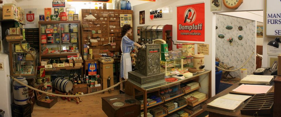 Auch der Kolonialwarenladen aus den 20er Jahren mit einem Sortiment von Schrauben bis zum Brause-Bonbon oder das Jugendzimmer im Stil der 60er Jahre, mit Schallplatten und Musiktruhe... Das Herz von Nostalgikern schlägt bei diesen Anblicken höher!