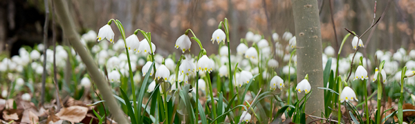 Die Märzenbecher erstrecken sich über 1,5 Kilometer Länge und 100 bis 200 Meter Breite in einer Höhenlage von 200 bis 280 Metern. Stellenweise ist der gesamte Waldboden mit Märzenbechern bedeckt.