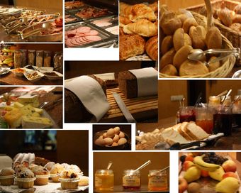 Auch für den süßen Zahn gibt es reichlich Plundergebäck, Mini-Croissants, Brioche, Toast- und Knäckebrot, Kuchen, Konfitüren und Honig und eine große Auswahl Konfektüre.