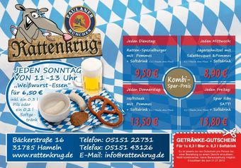 Jeden Dienstag Ratten-Spezialburger & Pommes für 9,50 €