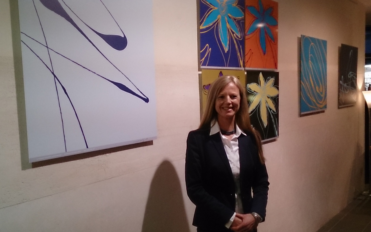 Ihre Kunstwerke sind maßgefertigte Unikate, die sich in Shoppingmalls, Hotels, Krankenhäusern, Flughäfen, Kindergärten, Arztpraxen wieder finden. In die Vinothek hat sie Ausschnitte ihrer „FloorART“-Projekte mitgebracht, wo man sozusagen ein Stück vom Original mit nach Hause nehmen kann. Der Standort des Originals ist auf jedem Bild vermerkt. CounterpART nennt Jeanet Hönig diese Ausschnitte, die auf Alu-Dibond-Platten gedruckt sind.