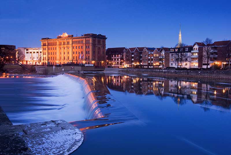 Hameln. Die Nacht. Anders als in den Tropen, kommt sie bei uns nicht unvermittelt, sondern schleichend – mit der Dämmerung. Die „blaue Stunde“ markiert ihren Beginn. Und ist auch für viele Mitglieder der Fotografischen Gesellschaft von Reiz. Mit der Kamera gingen sie in der Dunkelheit „auf Pirsch“ und zeigen im Infocenter in der Ausstellung „Hameln bei Nacht“ vertraute Motiven in neuem Gewand.