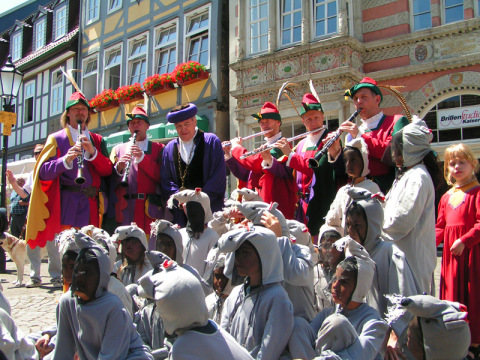 Wenn jemand in Hameln dieses Jahr seinen 60. Geburtstag wahrlich sagenhaft feiern wird, dann ist es die Rattenfänger-Spielgruppe der Stadt Hameln. Eine lange Zeit einen solchen Ball am Laufen zu halten: Jede Sommersaison spielen sie bei Wind und Wetter sonntags, Punkt 12:00 Uhr. Das hat Tradition und wird beibehalten. Alle Akteure raus aus den sonntäglichen Federn – hinaus zum Spiel im Gewand und Kostüm, die Sage um den Rattenfänger von Hameln den Menschen zu erzählen. Ehrenamtlich, dass sei an dieser Stelle mal betont – lediglich eine Eis-Karte für die kleinen „Ratten“ ist der materielle Lohn. Immateriell erhalten und gewinnen sie einiges mehr „und das ist es was es ausmacht und uns zusammen hält“, erklärt die circa 70-Köpfe zählende Gruppe den Zusammenhalt über die Jahre.