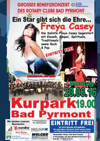 mit dem Bundespolizeiorchester Hannover - elfenhaft und stark: Freya Casey - ein Star gibt sich die Ehre Sängerin tritt auf Einladung des Rotary Clubs Bad Pyrmont am 20. Juni im Kurpark auf - zugunsten notleidender Kinder Bad Pyrmont.