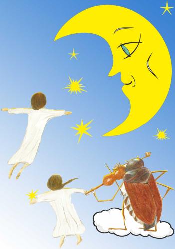 ... und mit Hilfe von Anneliese und Peterchen will er sein Beinchen vom Mond zurückholen. Mit Hilfe des Sandmanns und der Naturgeister, der Blitzhexe und des Donnermanns, des Eismax und der Nachtfee gelangen sie zum Mond - und das eigentliche Abenteuer beginnt.