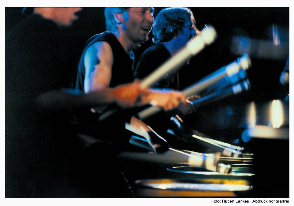 Auf Orchesterpauken, mächtigen Trommeln und Riesengongs, auf Ölfässern, Mülltonnen und Alu-Trittleitern zündet die Schlagzeugerformation Power! Percussion ein fulminantes Trommelfeuerwerk. Virtuose Trommelkunst paart sich mit Tempo und Spontaneität, archaische Kraft mit launiger Darbietung und ungebändigter Spielfreude. Wo Power!Percussion auftritt, sind die Menschen begeistert! Rhythmus. Pur. Schon mal ein Solo für Aluleiter gehört Pure Spielfreude trommelt dem Publikum entgegen, wenn Power! Percussion ihre Hände, ihre Körper und ihre Instrumente in rhythmische Energie verwandeln. Was dabei herauskommt, ist eine Symphonie aus geballter Kraft, die vom Publikum mit ungeheurem Erfolg aufgenommen wird. Allein das verwendete Instrumentarium ist beeindruckend und macht einfach Spaß beim Hinhören und Zuschauen. Staunen kann man auch über die rasenden Tempi, über die gleichzeitige Präzision aller Beteiligten und über die verrückten Ideen der sechs Trommler. Die holen aus ihren Instrumenten, aber auch aus alltäglichen Gegenständen raus, was nur rauszuholen ist, und haben selbst offensichtlich den größten Spaß dabei.