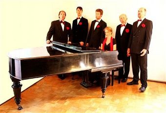 Einst vier, dann also fünf auf der Bühne, nun in Comedian Harmonists-Original-Besetzung mit sechs - Frollein, pardon! - fünf Herren und einer Dame am Flügel!