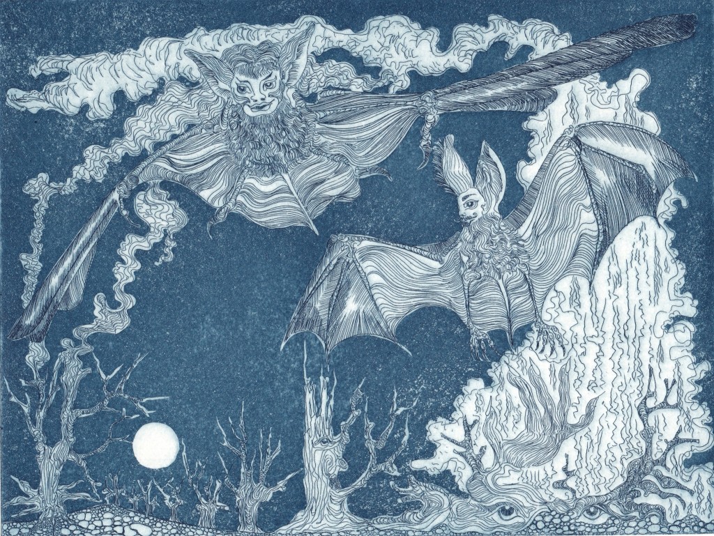 Zu dem ausgestellten Radierzyklus von den sieben Mondnächten “Traumwelten aus Lanzarote” verfasste Susanne Holtwiesche-Misgeld (SuHoMi) sieben Geschichten über die zauberhafte Vulkanlandschaft auf Lanzarote mit ihren Elementargeistern.