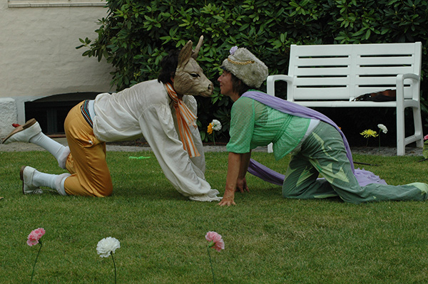 Die Natur ist in Unordnung, Flüsse treten über die Ufer, Stürme erheben sich, es kommt zu Missernten, denn Oberon und Titania, die Herrscher der Feenwelt, liegen im Streit um einen indischen Knaben, den jeder für sich beansprucht. Oberon ersinnt einen Plan, um sich an Titania zu rächen und den Knaben für sich zu gewinnen. Manuel Jadue und Katinka Springborn verwandeln sich spielerisch in immer neue Figuren, sind mal Elfen, mal Herrscher, mal Handwerker und so wird der berühmte Ausruf Zettels: „Lasst mich den Löwen auch noch spielen!“ zum Motto dieser rasanten Fassung zu zweit.