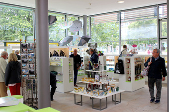 In der Touristinfo Hameln sind die „Andenken“ nach dem Umbau vor einem Jahr fein säuberlich gegliedert nach Themen-Inseln: Fahrrad / Souvenirs / Schmökern / Regionales / Mode, Accessoires und einen Bereich mit fair gehandelten Produkten, immer zum Thema Rattenfänger passend erhältlich. Ein Querschnitt von Karten zum Thema Wandern und Radfahren im Weserbergland, Bücher zum Thema Rattenfänger, Bildbände über Hameln in verschiedenen Sprachen und Krimis aus dem Weserbergland erweitern das Angebot. Etwa 150 Produkte führt der Shop der HMT.