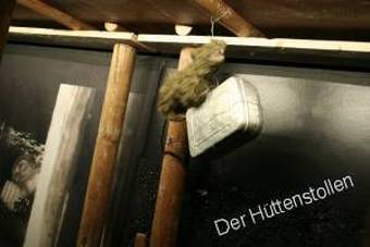 IMG_8173Ein besonderer Blickfang im nachgebauten Streb ist eine große Ratte, die auf einer Frühstücksdose sitzt. Das ist kein „Gag“ der Ausstellungsgestalter; viele ehemalige Bergleute berichten von Ratten, die ihnen unter Tage begegneten und die auf vielfältige Weise versuchten, an die mitgebrachte Verpflegung der „Kumpel“ zu gelangen.