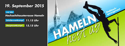 „Hameln hebt ab“, heißt das Stabhochsprungfest das von LG Weserbergland, dem Kreisportbund und der Hameln Marketing und Tourismus GmbH ins Leben gerufen wurde und erstmalig in der Hamelner Innenstadt stattfindet. Vielleicht wird es nicht ganz so hoch hinausgehen wie beim Weltrekord des Franzosen, doch allemal hoch genug, um einen Eindruck von der wohl spektakulärsten Disziplin der Leichtathletik zu bekommen, die wohl noch nie vor einer solch prächtigen Kulisse gezeigt wurde.