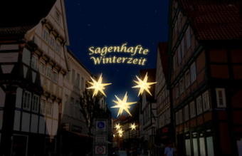 „Zu Hameln fechten Maus und Ratzen - am hellen Tage mit den Katzen“, so stieg der Dichter Karl Simrock (1841) in seine Verse über den Rattenfänger von Hameln ein. Vier seiner markantesten Sätze wurden ausgewählt, und erzählen die Sage in Kurzform. Fortan wird die Beleuchtung sogar weit über die Weihnachtszeit hinaus hängen bleiben, um die Aufenthaltsqualität in der dunklen Jahreszeit zu erhöhen. Deswegen fiel die Entscheidung, die Lichtbanner an den Eingangspforten in der Oster-, Bäcker und Neuetorstraße mit „Sagenhafte Winterzeit“ anstelle von „Hamelner Weihnachtsmarkt“ zu verzieren. Den Bezug zur Sage stärker herauszuarbeiten, war ein Ergebnis des Cima-Gutachtens zum Hamelner Weihnachtsmarkt im vergangen Jahr.