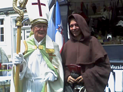 Weiterhin mit von der Partie, Ornella Hustadt, die in Mönchskutte gekleidet Info-Flyer für das Hamelner Sommerhighlight „Die Päpstin“ verteilte.