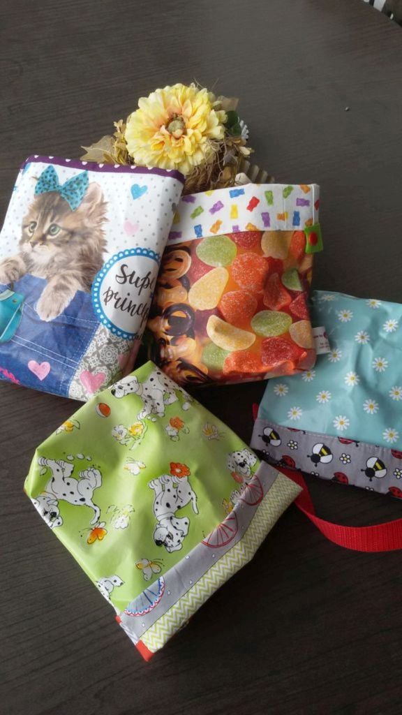 Für die Kinder habe ich kleine Umhängetaschen aus Wachstuch genäht, in denen "kleine" Schätze prima Platz finden.