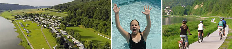 Bei uns auf dem "Campingplatz Rühler Schweiz", direkt an der Weser, 3 km südlich von Bodenwerder gelegen, ist es wunderschön. Das Weserbergland, und besonders unser Weserbogen zählt nicht von ungefähr zu den schönsten Fleckchen Erde in Niedersachsen. Hinter dem Campingplatz beginnt der Naturpark Vogler, der zu ausgedehnten Wander-, Walking- oder Mountainbike-Touren auf ruhigen Waldwegen einlädt.