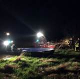 Freiwillige Feuerwehr Hameln - BrandschutzEin führerlos auf der Weser treibendes Boot stellt sich als Schute heraus. Hoher Wasserpegel und Fließgeschwindigkeit machten die Arbeit für die Feuerwehr und das THW schwierig.