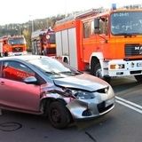 Freiwillige Feuerwehr Hameln - BrandschutzAn der Brückenauffahrt kollidieren zwei PKW, einer wird dabei auf die Seite geworfen. Die Fahrerin des umgekippten Fahrzeugs dabei glücklicherweise nur leicht verletzt.