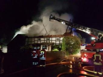 Bei Eintreffen der Einsatzkräfte stand der Dachstuhl vollständig in Flammen. Das Wohnhaus, ein Fachwerkhaus, und ein Verbindungstrakt zur angrenzenden Scheune wurden vollständig zerstört. Das angrenzende Scheunengebäude war ebenfalls vom Brand betroffen.
