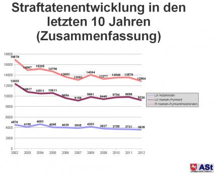 Hameln (ots) - (Hameln) Am Freitag, 15. Februar 2013, stellten Kriminaldirektor Ralf Leopold, der Leiter der Polizeiinspektion Hameln-Pyrmont/Holzminden, und Kriminaloberrat Jens Laskawy, der Leiter des Zentralen Kriminaldienstes bei der Inspektion, die Polizeiliche Kriminalstatistik (PKS) für das Jahr 2012 im Zuständigkeitsbereich der Inspektion vor.