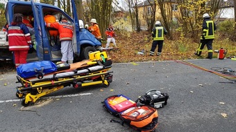 Nach Baumkollision: Schwerverletzter im Fahrzeug eingeklemmt - Rettungshubschrauber im Einsatz