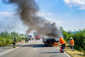 Lkw gerät auf Bundesstraße 442 in Brand - Beifahrer nach kurzer Flucht festgenommen