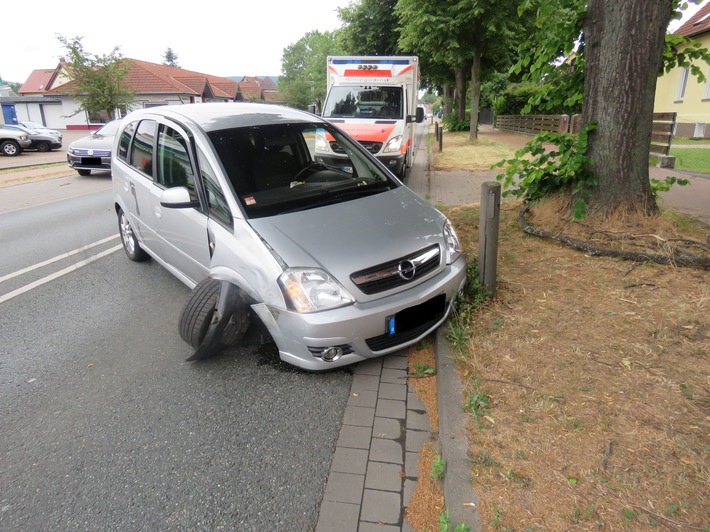 Bad Pyrmont (ots) - Am 11.07.2019, gegen 17.05 Uhr, kam es auf der Bundesstraße 1 in der Ortsdurchfahrt Groß Berkel zu einem Verkehrsunfall mit erheblichem Sachschaden. Eine 52-jährige Frau aus Horn-Bad Meinberg war vermutlich infolge Sekundenschlafes mit ihrem Pkw Opel Meriva nach rechts von der Fahrbahn abgekommen und war gegen einen dort parkenden VW Passat gefahren.