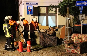 alarmierte Feuerwehr eintraf, konnte das brennende Sofa von Anwohnern gelöscht werden. Die Feuerwehr brauchte nur noch einige Glutnester abzulöschen.