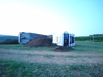Nettelrede (ots) - Am gestrigen Freitagabend, gegen 20:45 Uhr, kippte im Bereich Nettelrede ein Sattelzug beim Entladen von Mutterboden auf ein Feld. Beim Anheben des Kippaufliegers gerät das Fahrzeug in eine Schräglage und kippt im weiteren Verlauf auf die rechte Fahrzeugseite. Hierbei verletzt sich der 43-jährige Fahrzeugführer aus Rinteiln schwer.
