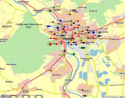 Unfallschwerpunkte existieren nicht, die Unfälle verteilen sich über das Stadtgebiet.
