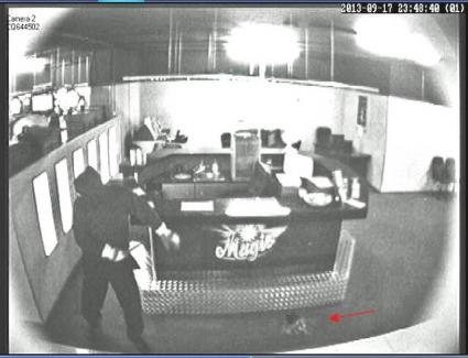 Auch haben die Ermittler des Zentralen Kriminaldienstes der Polizei in Hameln ein Bild aus der Videoüberwachungsanlage der Spielothek gesichert und wenden sich damit an die Öffentlichkeit. Dies Bild zeigt den Täter beim Verlassen der Spielothek. Der Täter wurde wie folgt beschrieben: Etwa 185 cm groß, schlanke Figur. Der Räuber war gänzlich schwarz bekleidet und trug eine schwarze Sturmhaube mit Sehschlitzen auf dem Kopf.