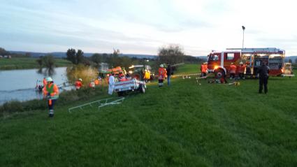 Über einen Acker und eine Weserwiese fuhr der Pkw mit voller Fahrt in die Weser und versank vollständig.
