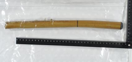3.) Wer kann Hinweise zur Herkunft der abgebildeten Tatwaffe (vermutlich Stuhl- oder Tischbein) geben beziehungsweise wer hat ähnliche Gegenstände jüngst zum Beispiel über die Sperrmüllabfuhr entsorgt?