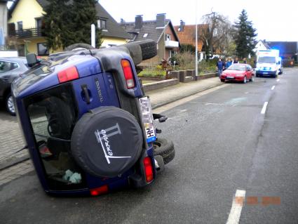 Geländewagen prallt auf geparkten Pkw und kippt um - Fahrer leicht verletzt