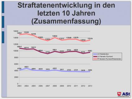 In 2013 waren es insgesamt 6560 Tatverdächtige (darunter 821 Kinder und Jugendliche), die durch die Beamten der Polizeiinspektion Hameln-Pyrmont/Holzminden ermittelt wurden.