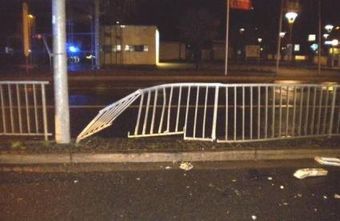 Daimler schleudert in Geländer - Fahrer flüchtet von der Unfallstelle