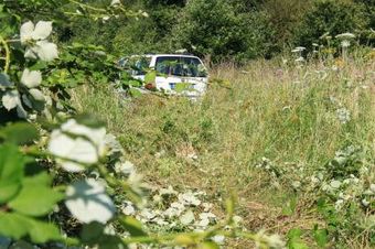 Der VW Golf rutschte die Böschung hinab und durchbrach eine geschlossene, dicht gewachsene Buschreihe. Im eng mit Büschen und Sträuchern bewachsenen Grünstreifen zwischen Bundesstraße und Bahnlinie durchpflügte das Fahrzeug noch ca. 200 Meter Buschwerk, um dann von einer massiven Brombeerhecke gestoppt zu werden.
