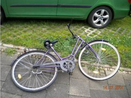 Es handelt sich um lila-farbenes Damenfahrrad der Marke "California" mit 28-Zoll-Reifen (siehe anhängendes Foto).