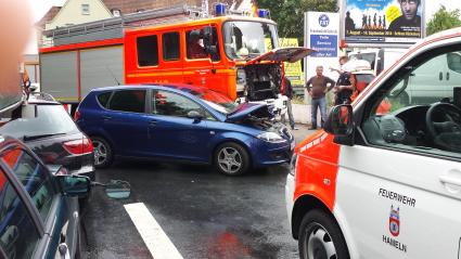 Der Fahrer des schwarzen Seat (46) aus dem Landkreis Hildesheim sowie die Insassen aus dem Mercedes (der Fahrer ist 51 Jahre alt und kommt aus Beckum, die Beifahrerin ist eine 43-jährige Hamelnerin) wurden leicht verletzt.