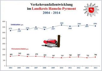 Hameln (ots) - (Hameln) Trotz eines leichten Rückgangs bei der Gesamtunfallzahl (im Zuständigkeitsbereich der Polizeiinspektion Hameln-Pyrmont/Holzminden wurden im Jahr 2014 5324 Verkehrsunfälle registriert; im Vorjahr waren es 48 polizeilich aufgenommene Verkehrsunfälle mehr) ist die Za ...