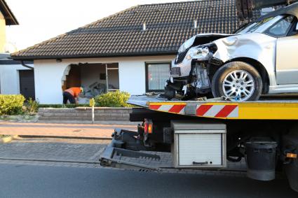 Pkw durchbricht Außenfassade eines Einfamilienhauses