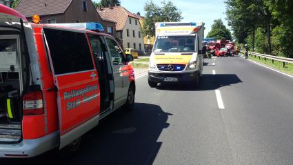 Erstmeldung: Frontalzusammenstoß - Rettungshubschrauber im Einsatz - Bundesstraße 1 voll gesperrt.