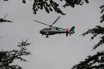 Der Polizeihubschrauber mit einem BFU-Mitarbeiter überflog in den Vormittagsstunden die Ortschaft und die Absturzstelle, um die Verteilung der Trümmerteile dokumentieren zu können.