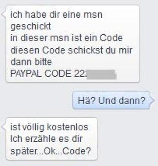 Auf dem Handy des Opfers gehen SMS der Zahlungsdienste "Paypal" oder "Zong" ein, in dem Codes stehen. Die Hacker fordern das Opfer dazu auf, die Codes per Facebook-Nachricht an die Betrüger zu schicken. Die meist im Ausland sitzenden Betrüger lösen diese Codes ein und nutzen damit meistens kostenpflichtige Telefonmehrdienste / Drittanbieterdienste oder Onlinespiele. Die Kosten dieser Nutzung werden über die Telefonrechnung dem Geschädigten auferlegt.