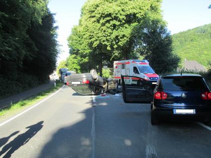 Durch den Anstoß wurde das Fahrzeug zurück auf die Fahrbahn geschleudert und landete auf dem Dach. Zum Glück herrschte zu diesem Zeitpunkt kein Gegenverkehr, so dass lediglich der Audi total beschädigt auf dem Dach liegend auf der Mitte der Fahrbahn zurückblieb. Der allein im Fahrzeug sitzende 82-jährige wurde bei dem Unfall schwer verletzt und musste zur stationären Behandlung ins Krankenhaus eingeliefert werden.