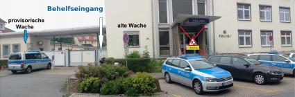 Für Besucher der Polizei ergeben sich dadurch folgende Hinweise: die Wache ist über den eigentlichen Hauptzugang (Lohstraße 25) nicht erreichbar. Bürgerinnen und Bürger werden geben, den Hinweisschildern zu folgen und den Eingang links neben dem Hauptgebäude am Zufahrtstor zu benutzen. Von hieraus gelangt man zu einem Flachdachbau, wo derzeit die provisorische Wache nur unweit der alten Wache untergebracht ist.