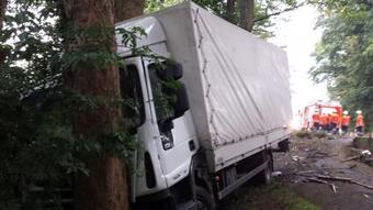 Lkw prallt gegen Baum